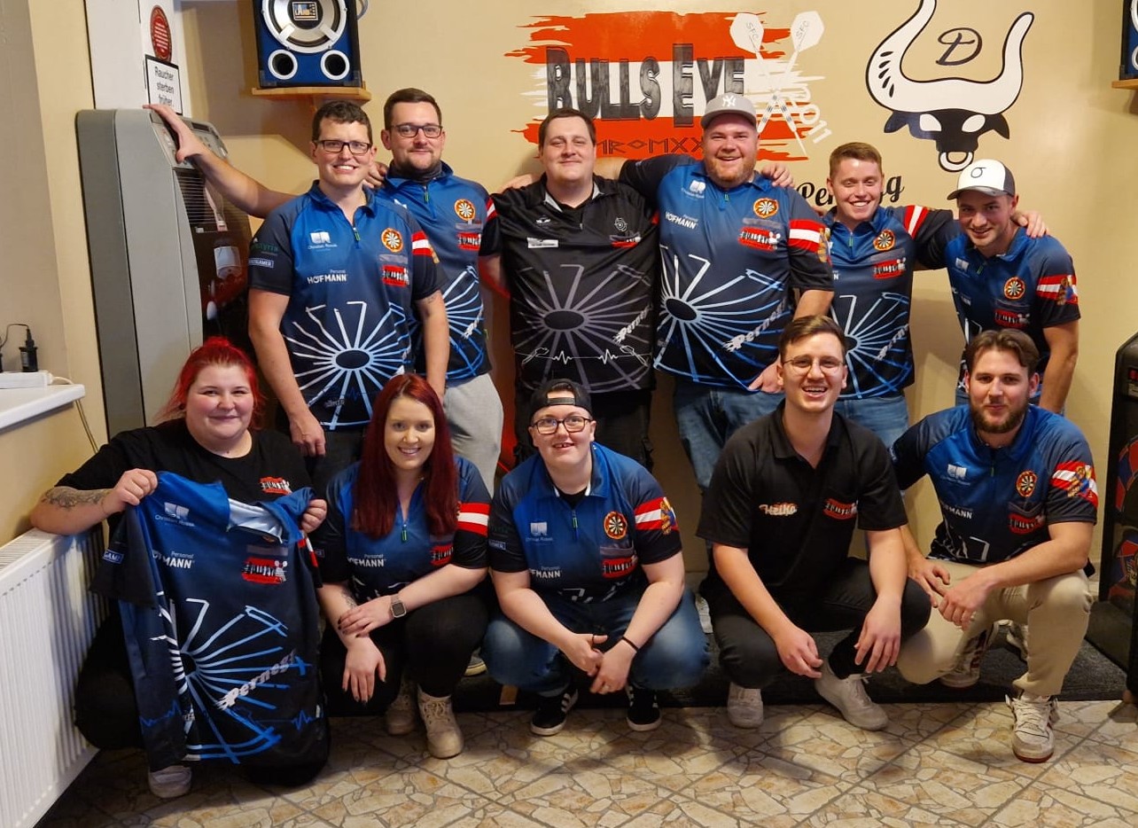 11 von unseren 16 Teamspieler*innen der Saison 2024/25. BullsEyeLegionäre und Dartaholics BullsEye Pernegg.